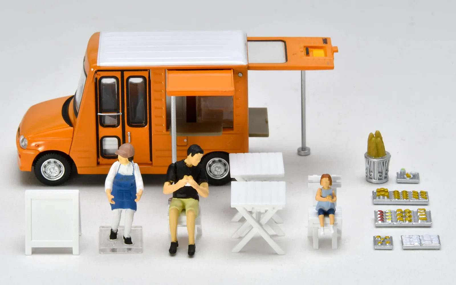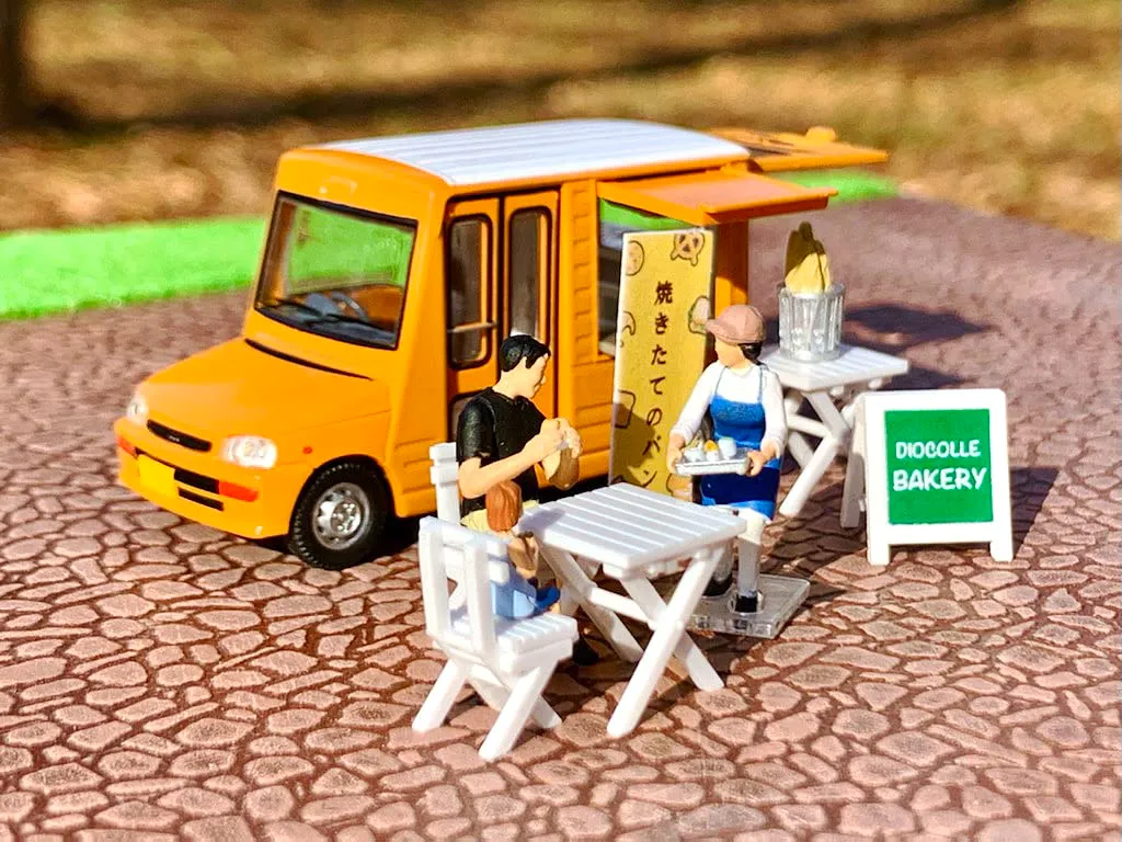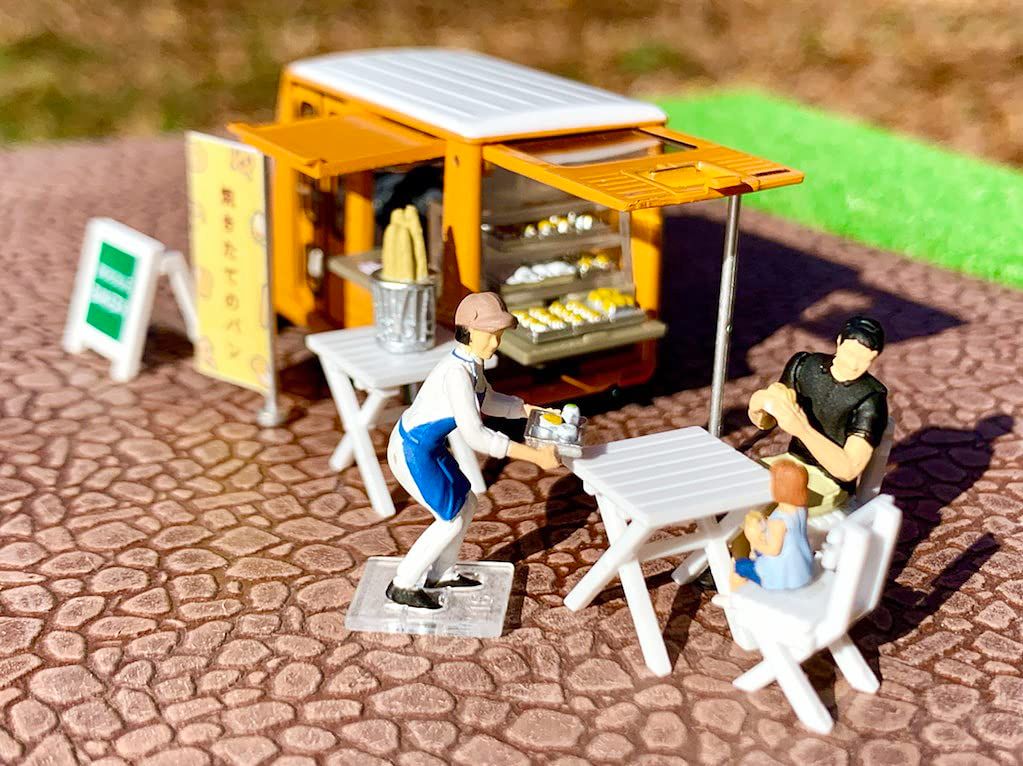 フィギュア+小物のセット。パン屋仕様の移動販売車が付属!
