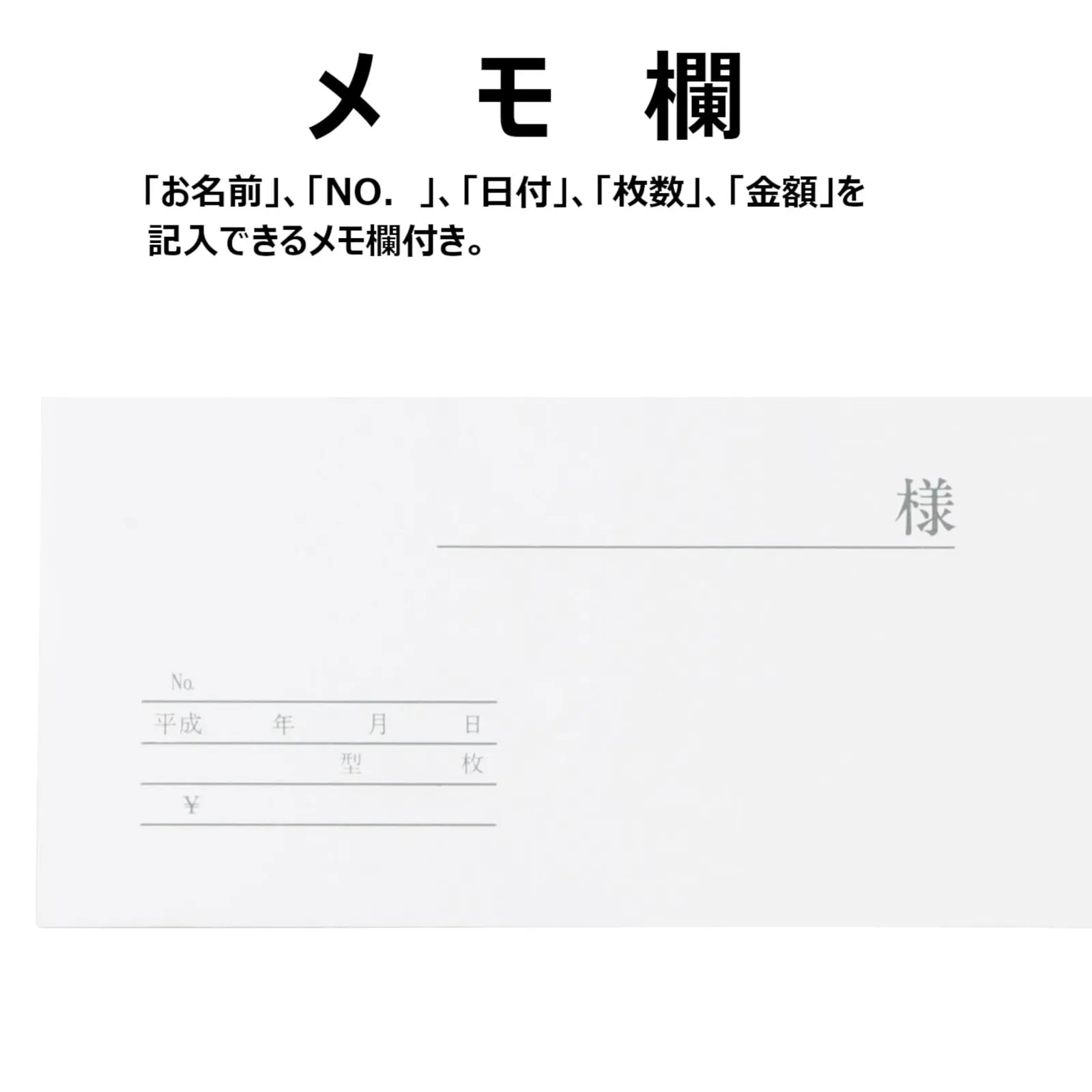 お名前、NO.、日付、枚数、金額を記入できるメモ欄付き。