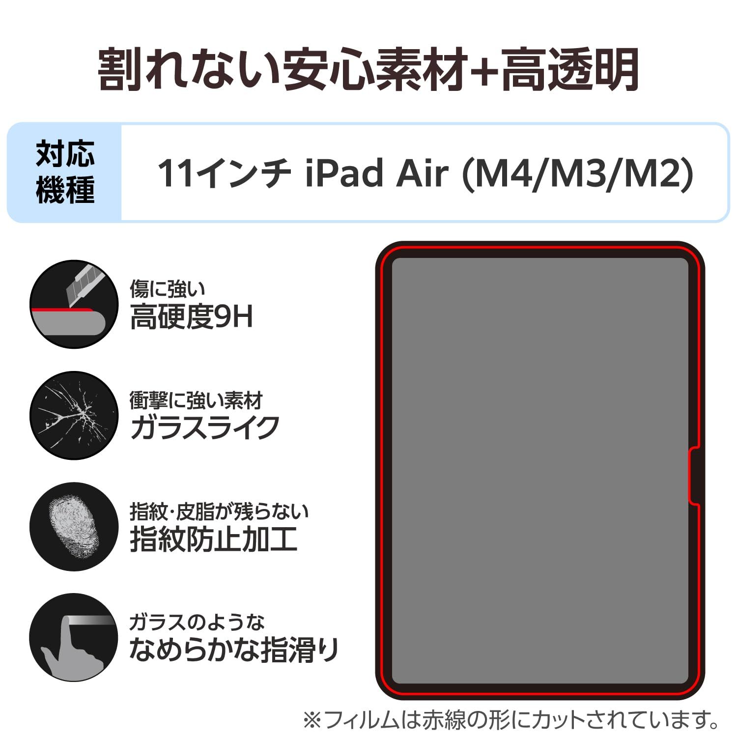 新品 エレコム iPad Air 11インチ (M4/M3/M2) 10.9 (第5世代 第4世代) ガラスライクフィルム 9H表面硬度 指紋防止 貼りやすい 貼り直し可能 保護フィルム カバー TB-A25MFLGL