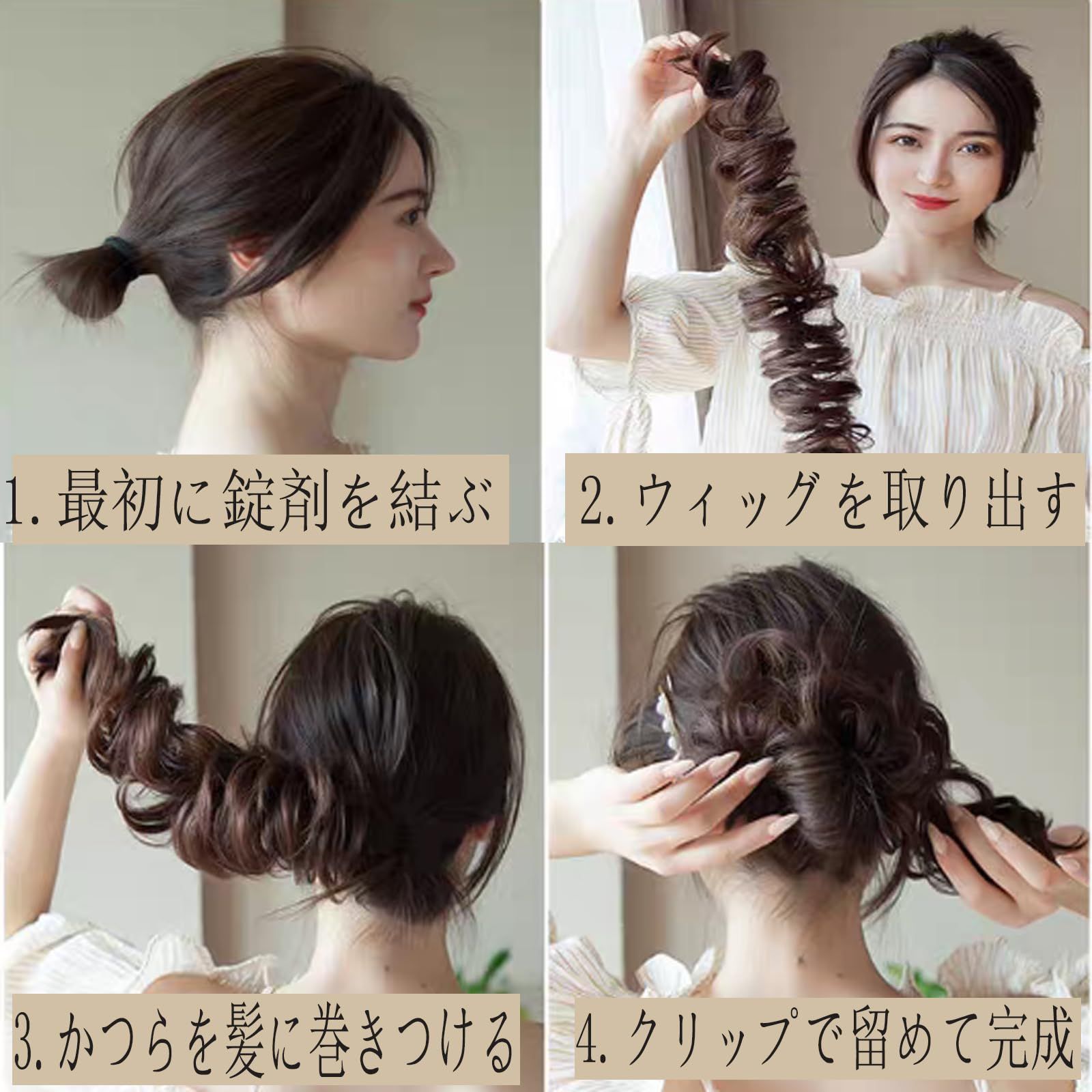 「使いやすい」地毛を使ってのヘアアレンジが苦手な人でも、ロープウィッグなら憧れのアレンジスタイルに!かわいいお団子スタイルも一瞬でなれちゃいます。ヘアピンで固定することで、簡単にお団子やオシャレな巻き髪など様々なスタイルを作ることができます。