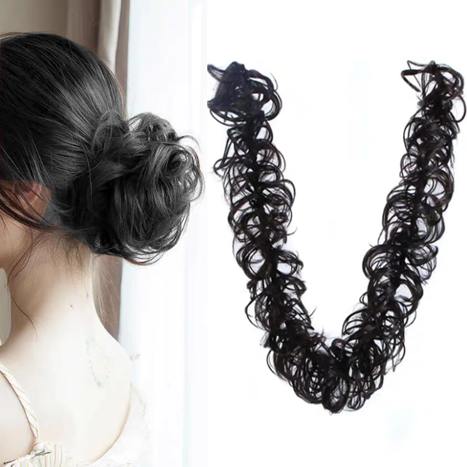 新品 HAPVITAL お団子 ウィッグ 和装 シニヨン 七五三髪飾り カールロープ お団子ポイント エクステ 巻き付け 部分 つけ毛 耐熱 ナチュラルブラック (ブラック)