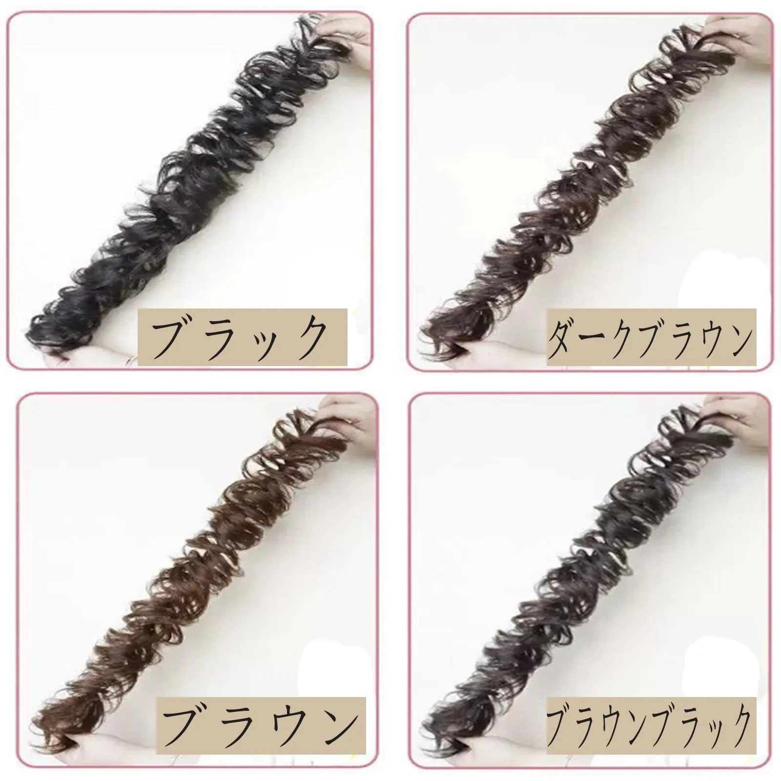 「カラー・サイズ」ヘアエクステの色はブラック、ブラックブラウン、ブラウンが選べます。垂直の自然長さは90センチです。ふんわり感を手軽に。必要に応じてトリミングすることもできます。高品質耐熱ファイバー。
