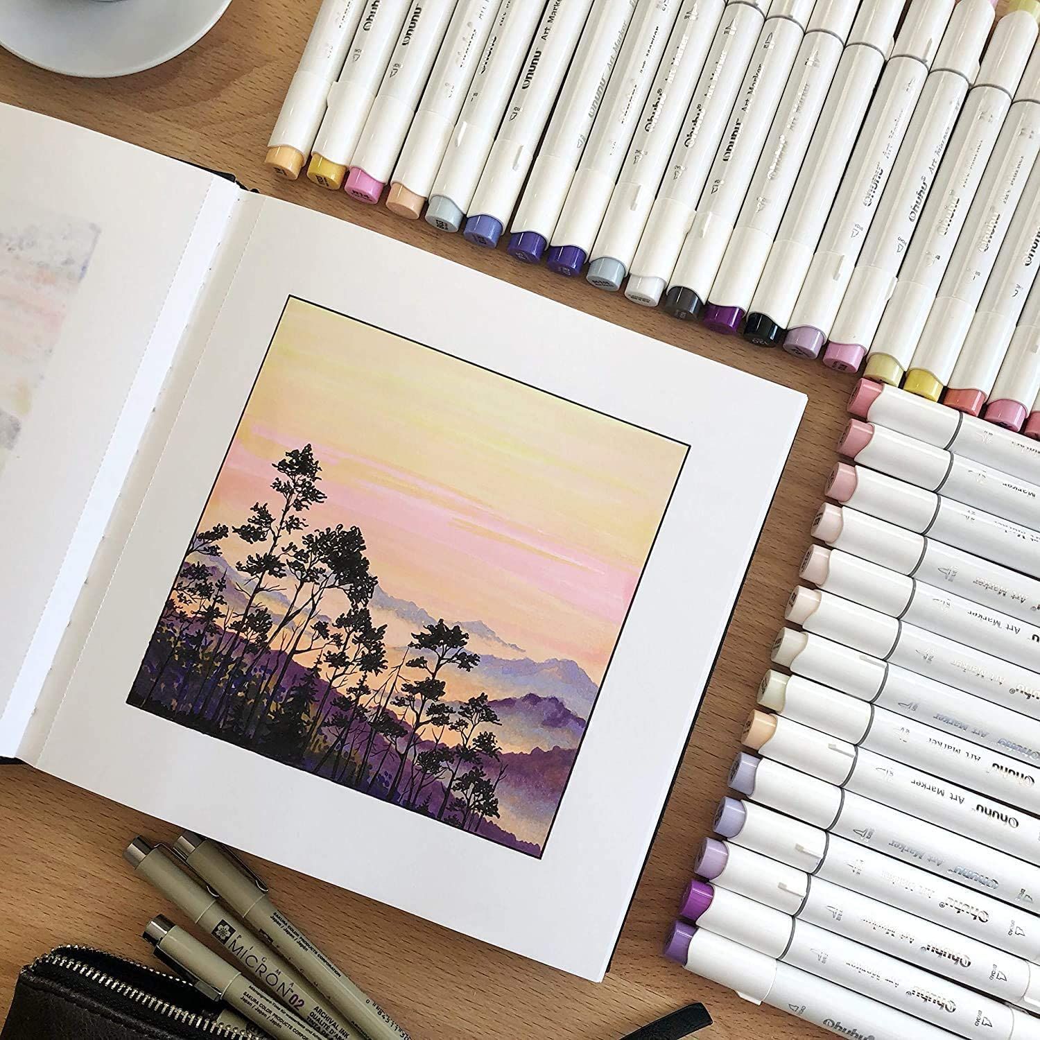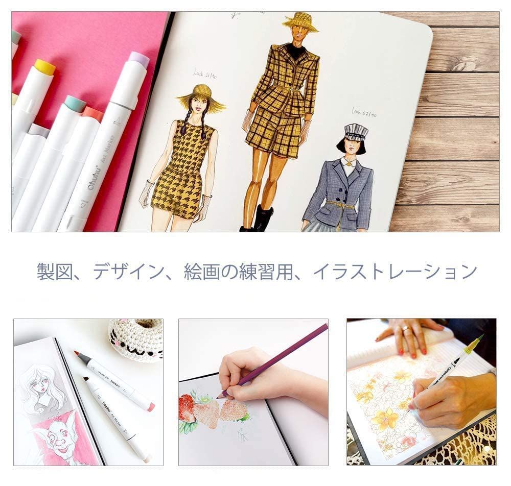 【中性紙・いろんな画材に対応】:中性紙なので酸化による紙の劣化を防ぎ、嫌なにおいがなく、普通の紙より色を長く保ち、黄変する可能性が低いです。アルコールマーカー、水性マーカー、色鉛筆、画用木炭、インクなど様々な画材に対応。特にohuhuマーカーペンとの相性は抜群です!