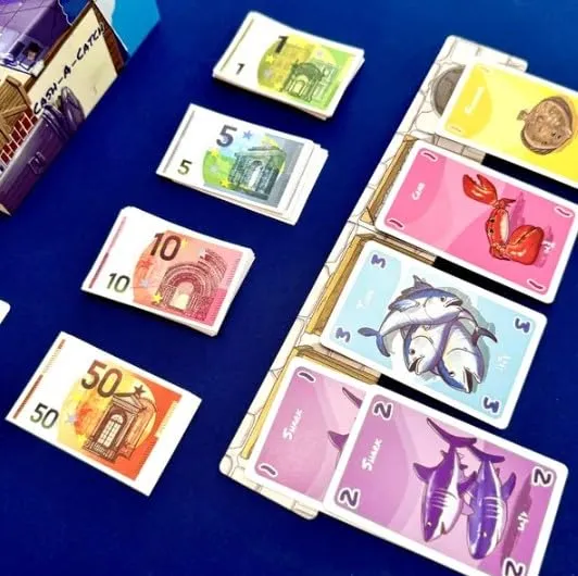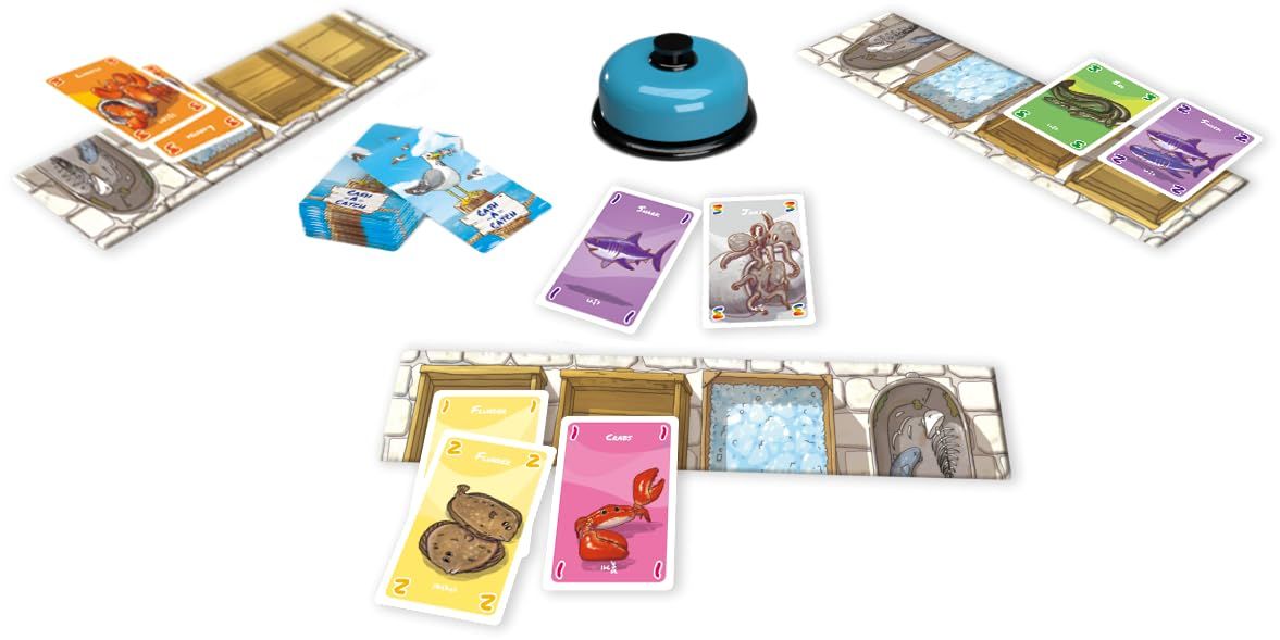 【腐る前に売り抜けろ】 誰かが魚を売却すると、他のプレイヤーの同じ魚は「腐って」しまい、ゴミ箱へ捨てなければなりません。市場の動向を読み、相手を出し抜く駆け引き(インタラクション)が熱いゲームです 。
