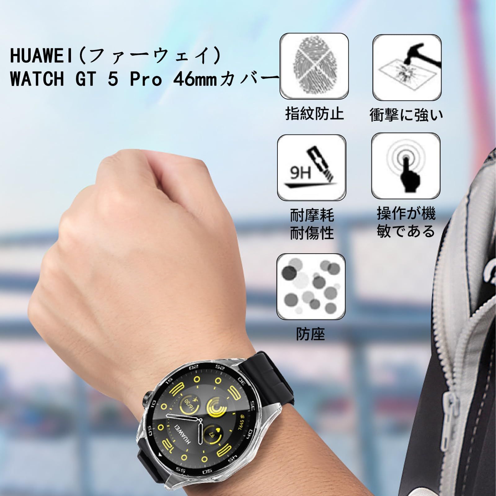 新品 ファーウェイ WATCH GT 5 Pro 46mm カバー 超薄型 PC+ガラス素材 一体型 ファーウェイ WATCH GT 5 Pro 46mm ケース対応 全面保護 超薄型 装着簡単 耐衝撃 高透過率 指紋防止 傷防止(クリア)