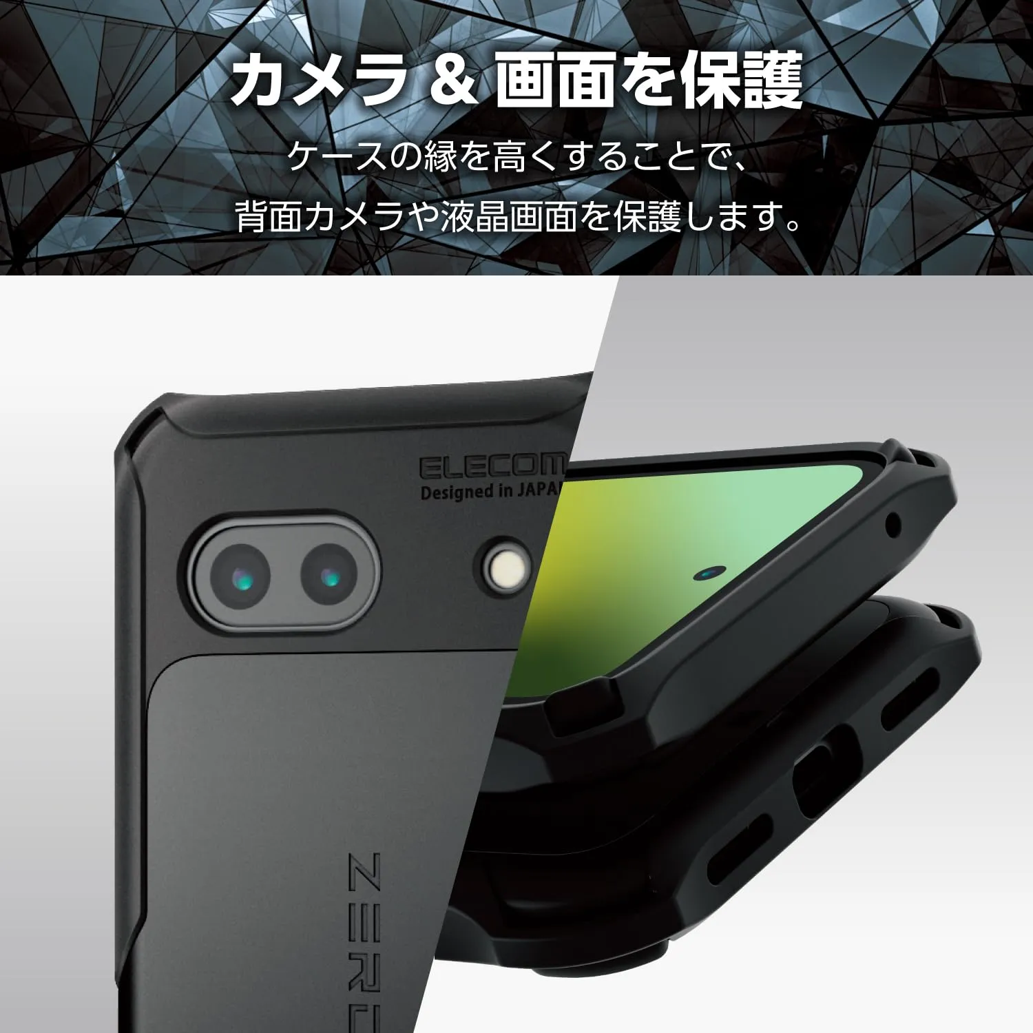 新品 エレコム Google Pixel 8a ケース カバー 耐衝撃 衝撃吸収 ZEROSHOCK 4つ角ダンパー ダブルレイヤー設計 ハニカム構造 ストラップホール付き カメラ保護 ワイヤレス充電 対応 エアークッション ブラック PM-P241ZEROB