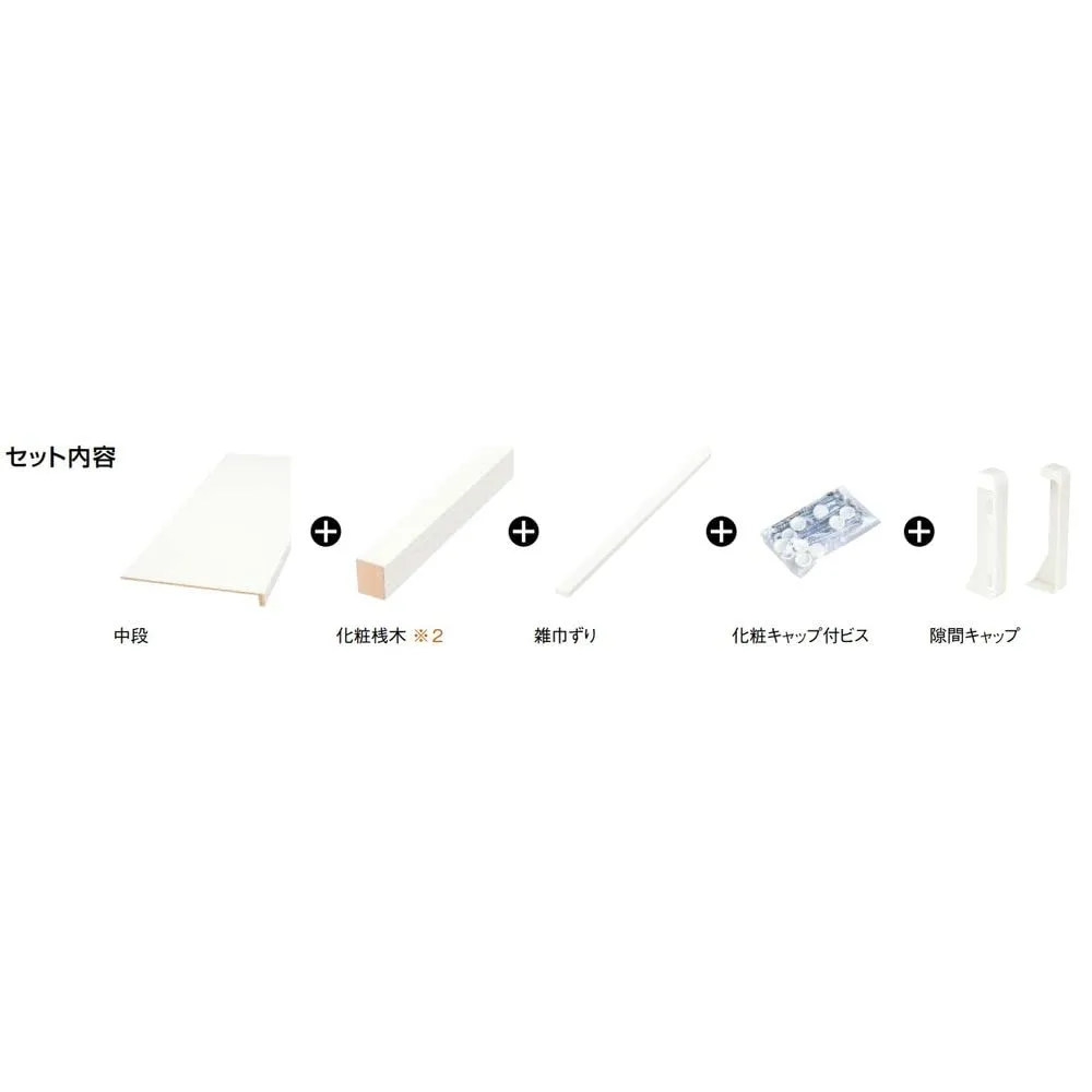 セット内容:中段、化粧桟木、雑巾ずり、化粧キャップ付ビス、隙間キャップ