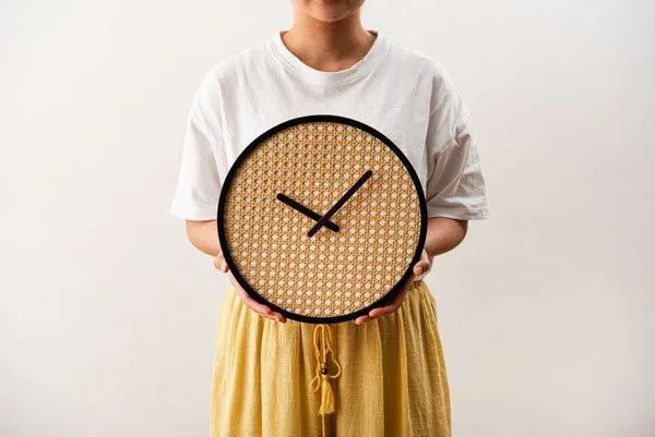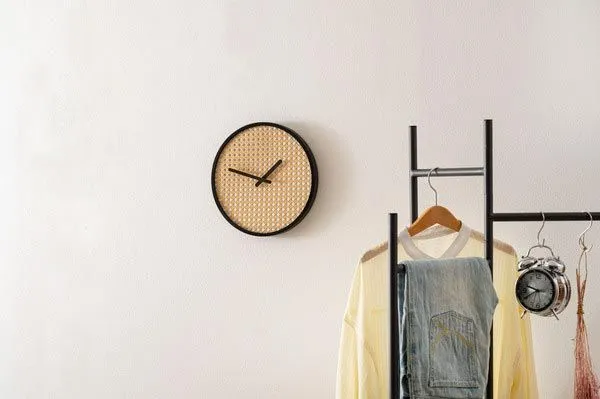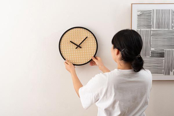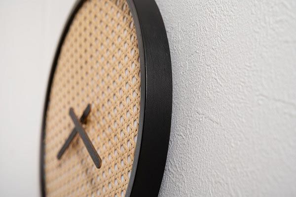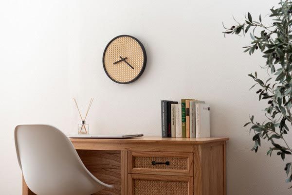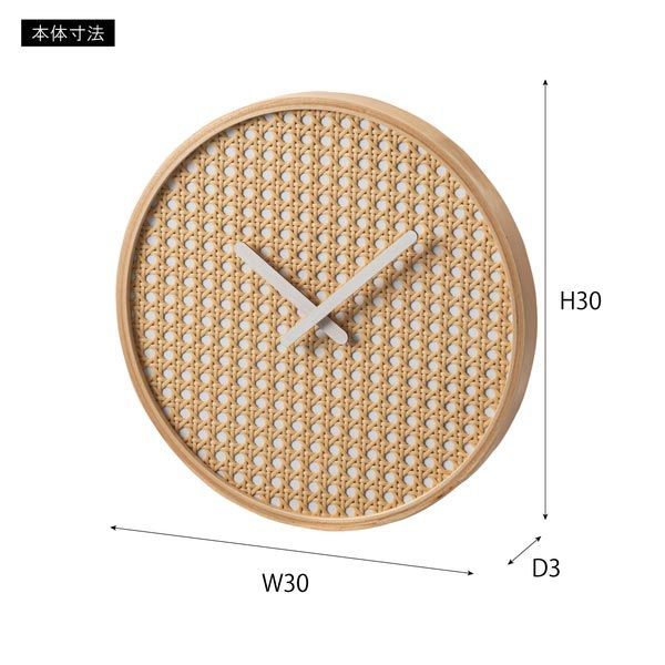 【組立】完成品 W30×D3×H30cm 暮らしになじむ、素材の個性と調和。 それぞれの素材が持つ美しさを活かしたウォールクロック。 やさしい風合いのラタン調デザイン。 空間になじみながらも、しっかりとした存在感でインテリアを引き立ててくれます。 針の音が気にならない静音タイプなので、書斎や寝室にもおすすめです。 ★参考写真・イメージ画像が含まれている場合がございます。★色味・サイズ等、製造上の個体差も含め若干仕様が異なるケースがございます。★写真の光彩やディスプレイによる色め違いもご了承ください。