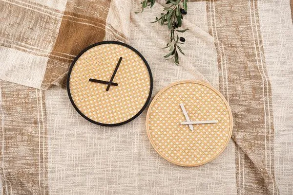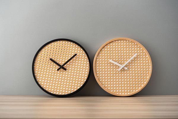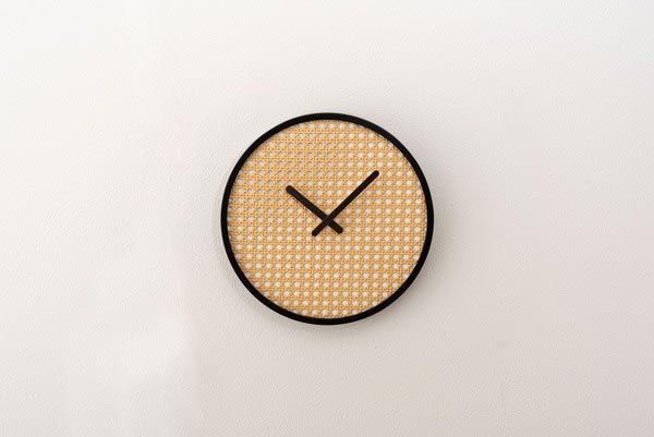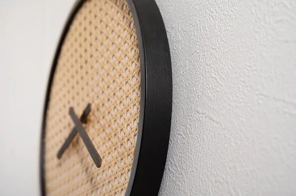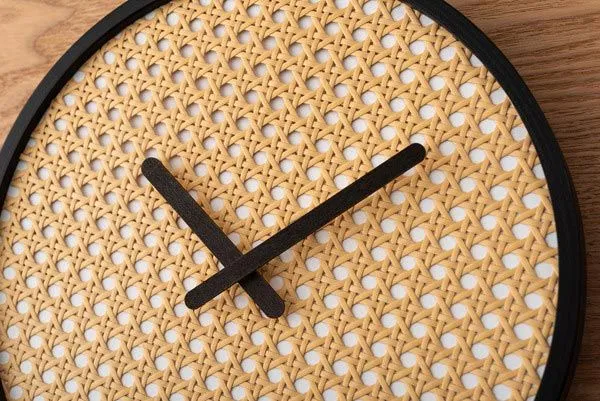 丸型壁掛け時計(ラタン調デザイン)「W30×D3×H30cm」(静音タイプ)No.201/ブラック