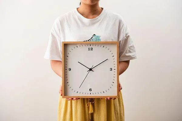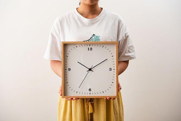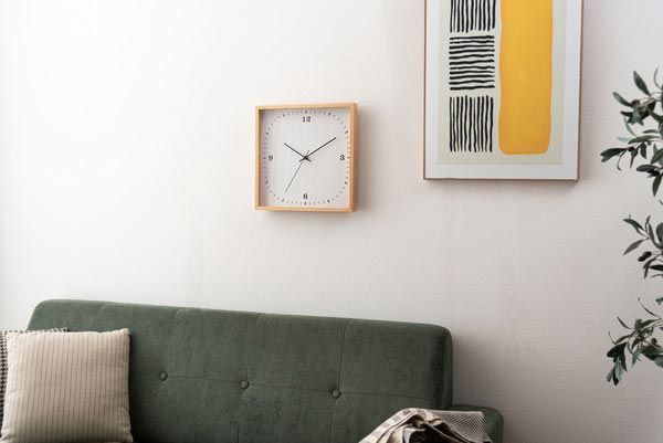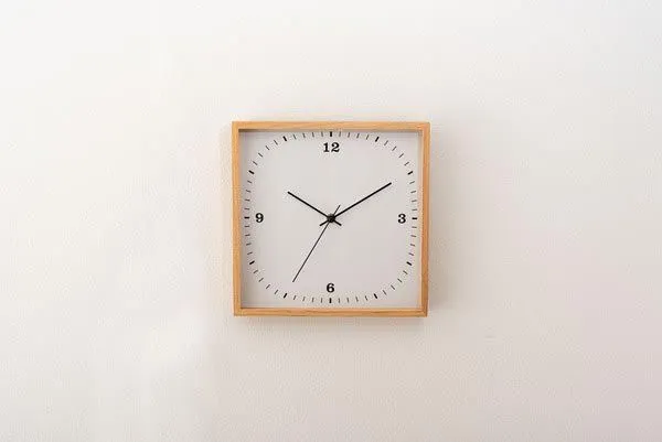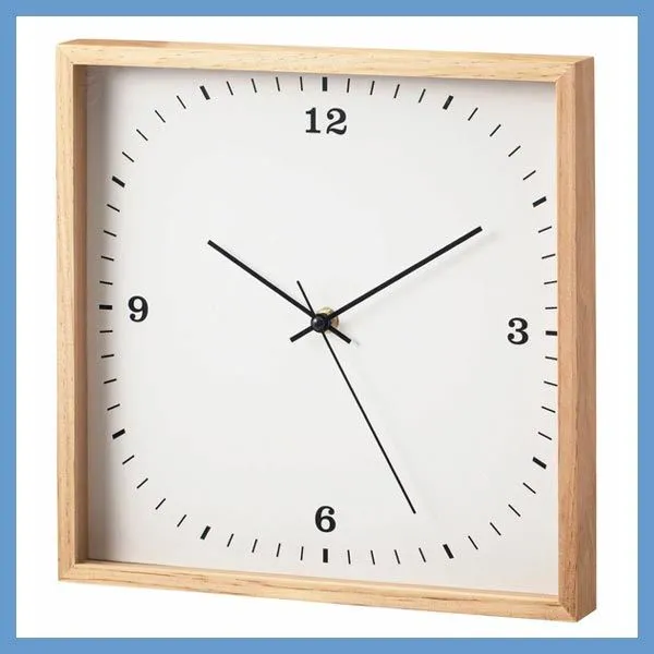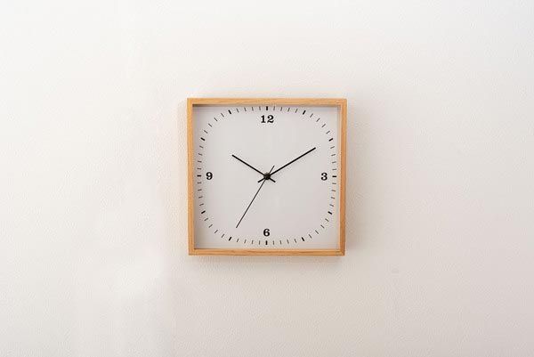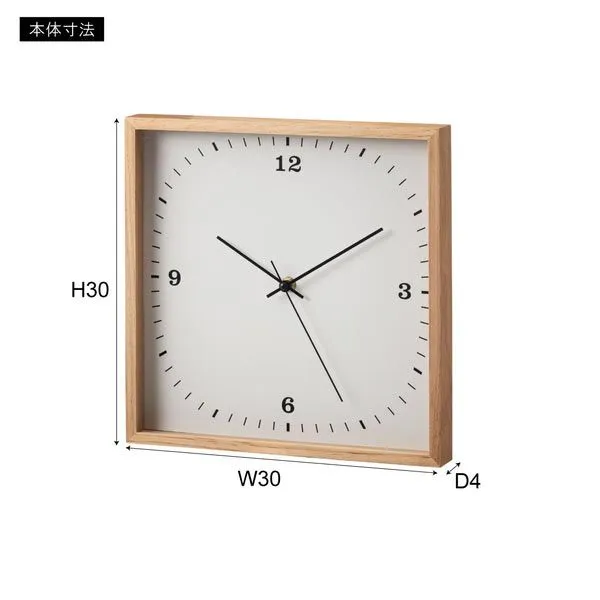 角型壁掛け時計(天然木フレーム)「W30×D4×H30cm」(静音タイプ)No.202/ナチュラル