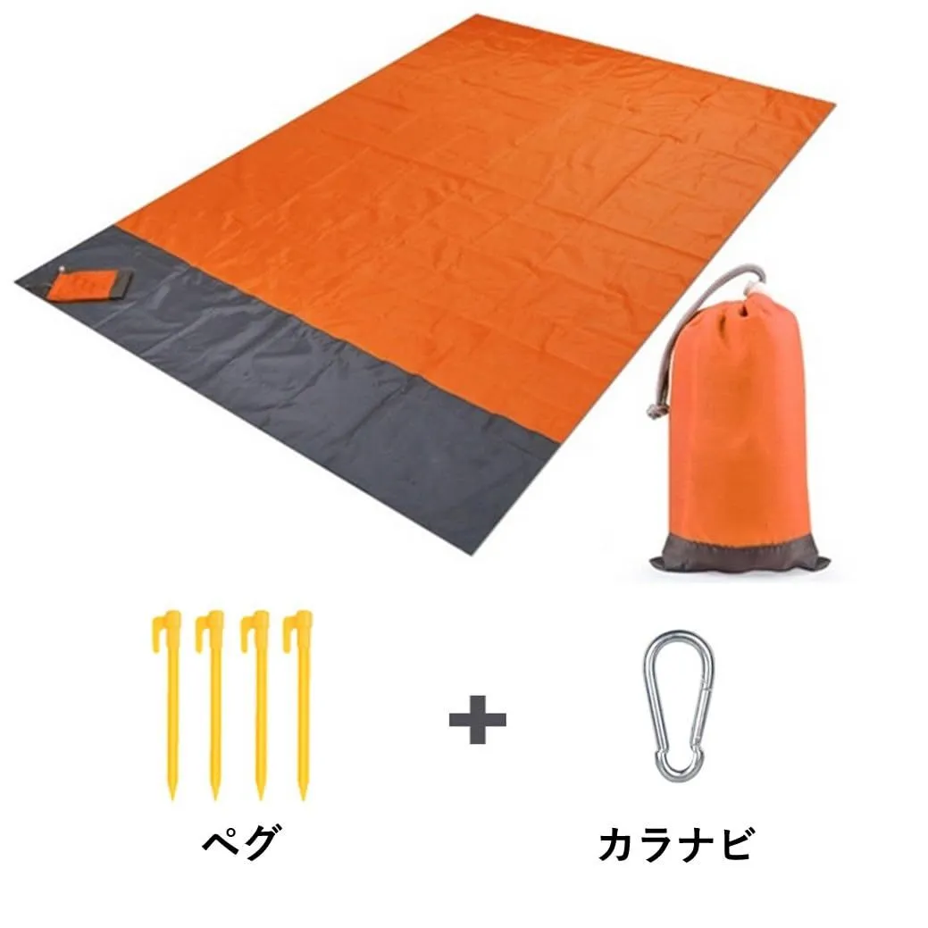 砂がつかない グランドシート 2~4人用 210*200cm レジャーシート ビーチマット 防水 ソロキャンプ アウトドア ピクニック リタ商会 超軽量 ペグ付き 収納袋付き (オレンジL)