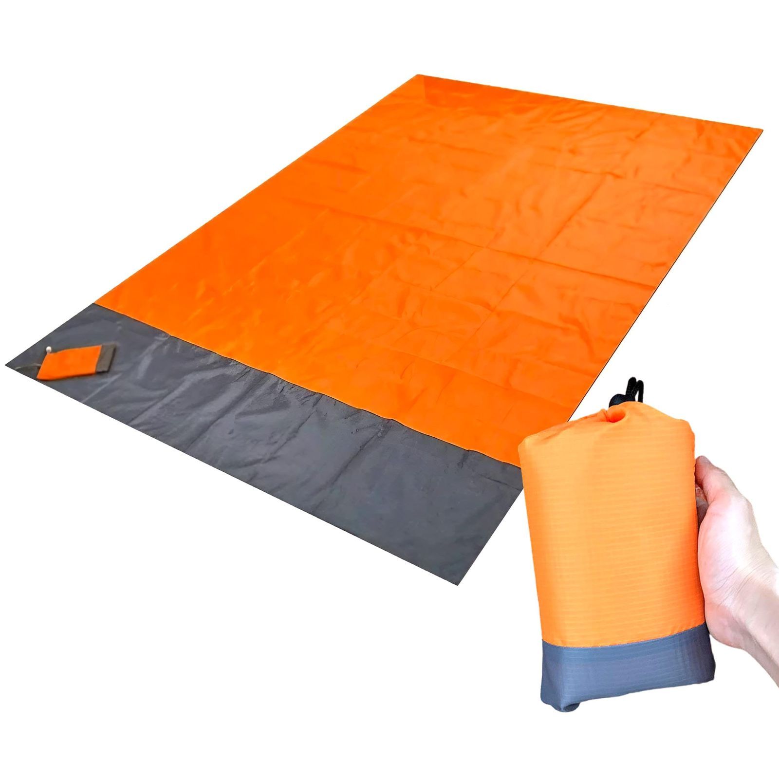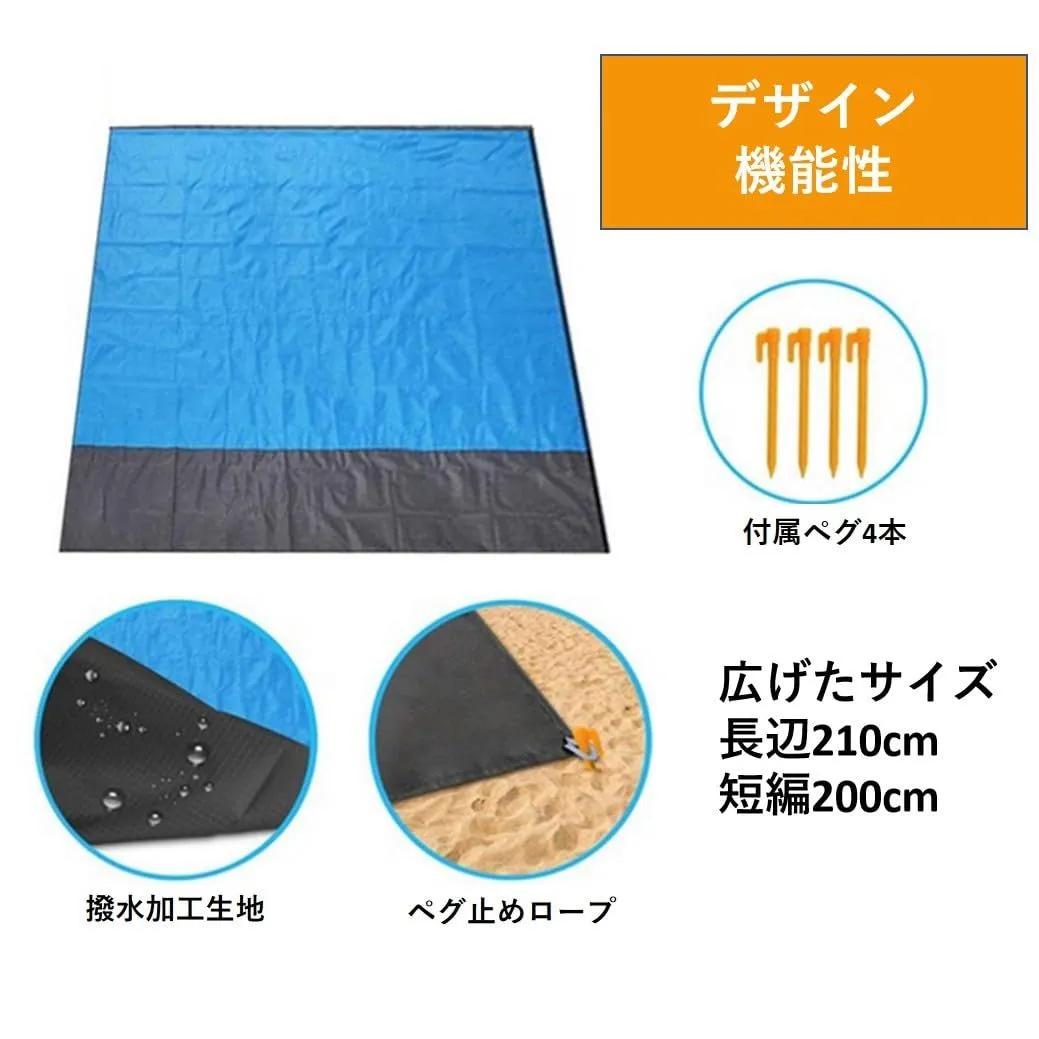 リタ商会 ビーチマット 砂がつかない グランドシート 2~4人用 210*200cm レジャーシート 防水 ソロキャンプ アウトドア ピクニック 超軽量 ペグ付き 収納袋付き (オレンジL)