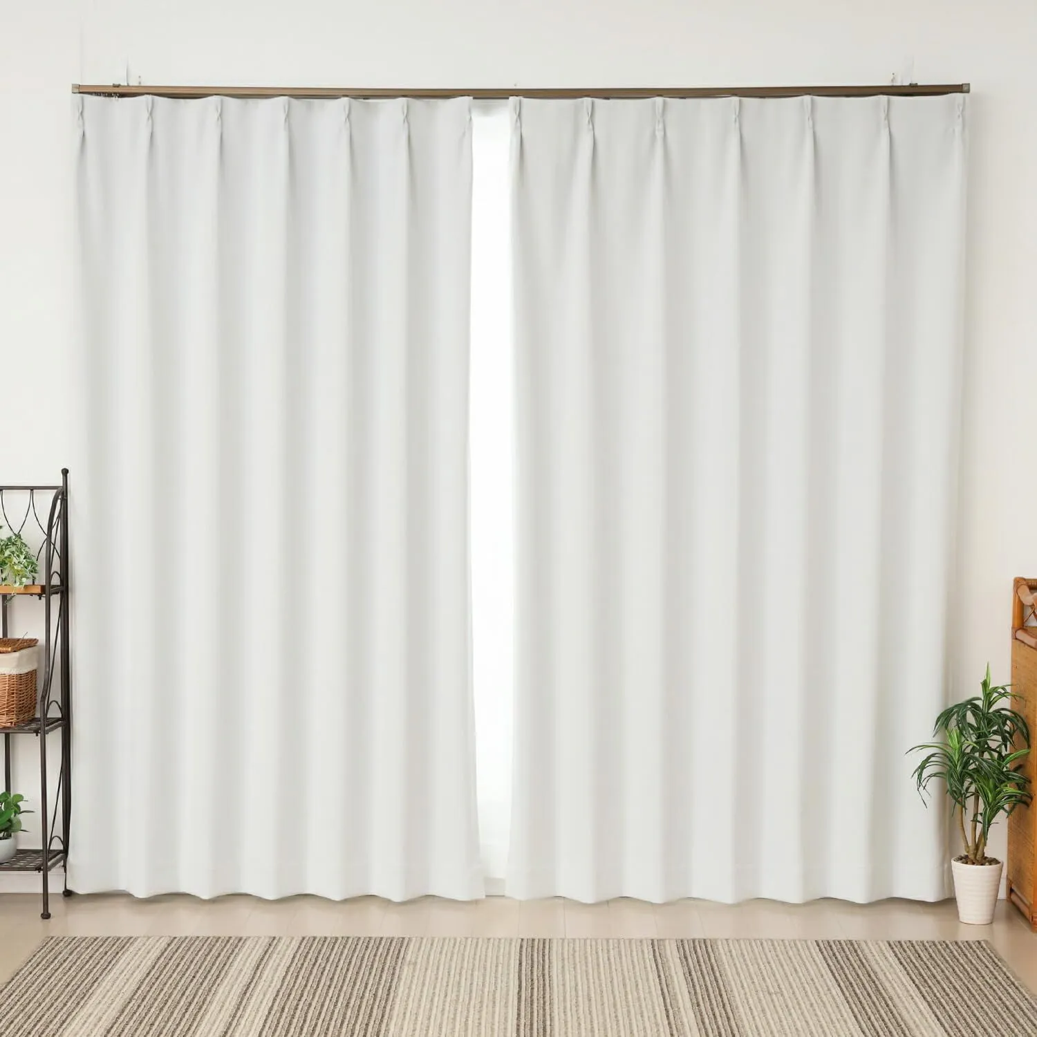 ◆1級遮光(遮光率99.99%)の生地でも色によって遮光率に若干の差が出ます。薄めの色は2級遮光に近くなります。実感値としては光の遮り具合にけっこう差を感じる場合もございます。遮光率はカーテン生地に対する試験ですので、実際にカーテンとして使う場合、お部屋をかなり暗くするためには両サイドや上下部分も十分に覆うなどの工夫が必要です。「フルダル」というタイプの、織りの目が詰まった触り心地が滑らかな生地の遮光カーテンです。細い糸を大量に使って織り込んだ高密度生地なので、断熱性もかなり期待できます。商品画像は高さ178cmの写真です。カーテンレールは付属しません。