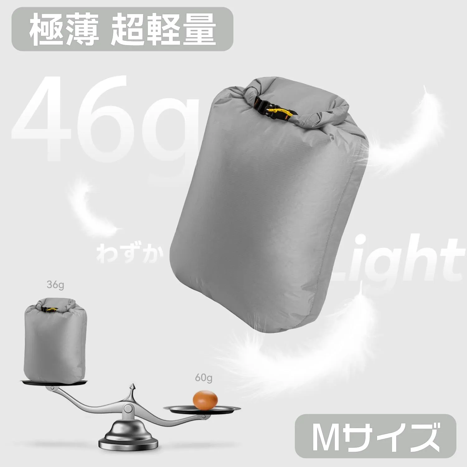 極薄&超軽量:??Mサイズの重さわずか46gの軽量さ、ドライバッグを折り畳んだら丸めてリュックなどに引っ掛けて荷物も嵩張らず、ストレスなく持ち運べます。