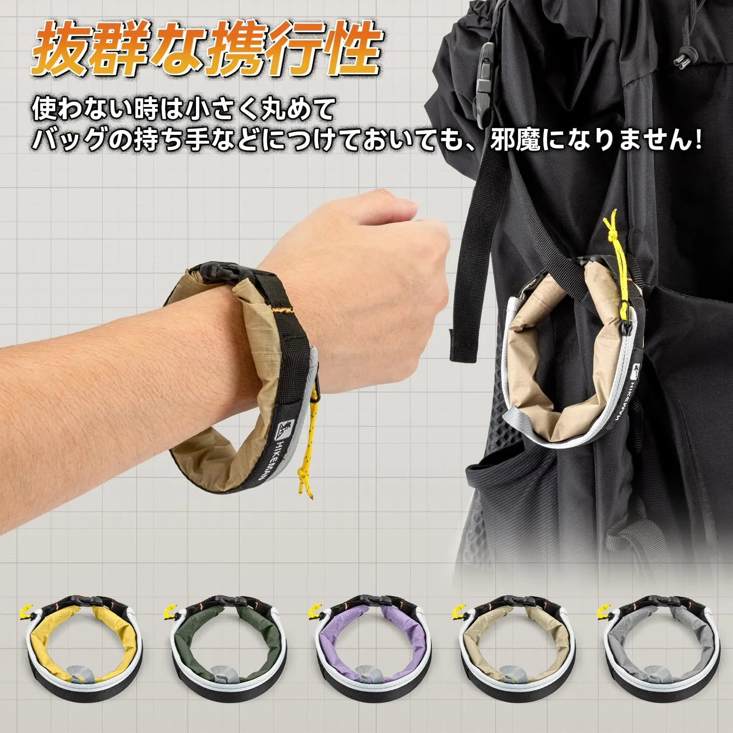 コンパクト:??畳むと手のひらサイズで、持ち運びには便利です、アウトドアでの活動や災害時の移動時に手首に巻いて携帯することもできます。海や川でバッグを持てない手ぶらの時には携帯に便利です。