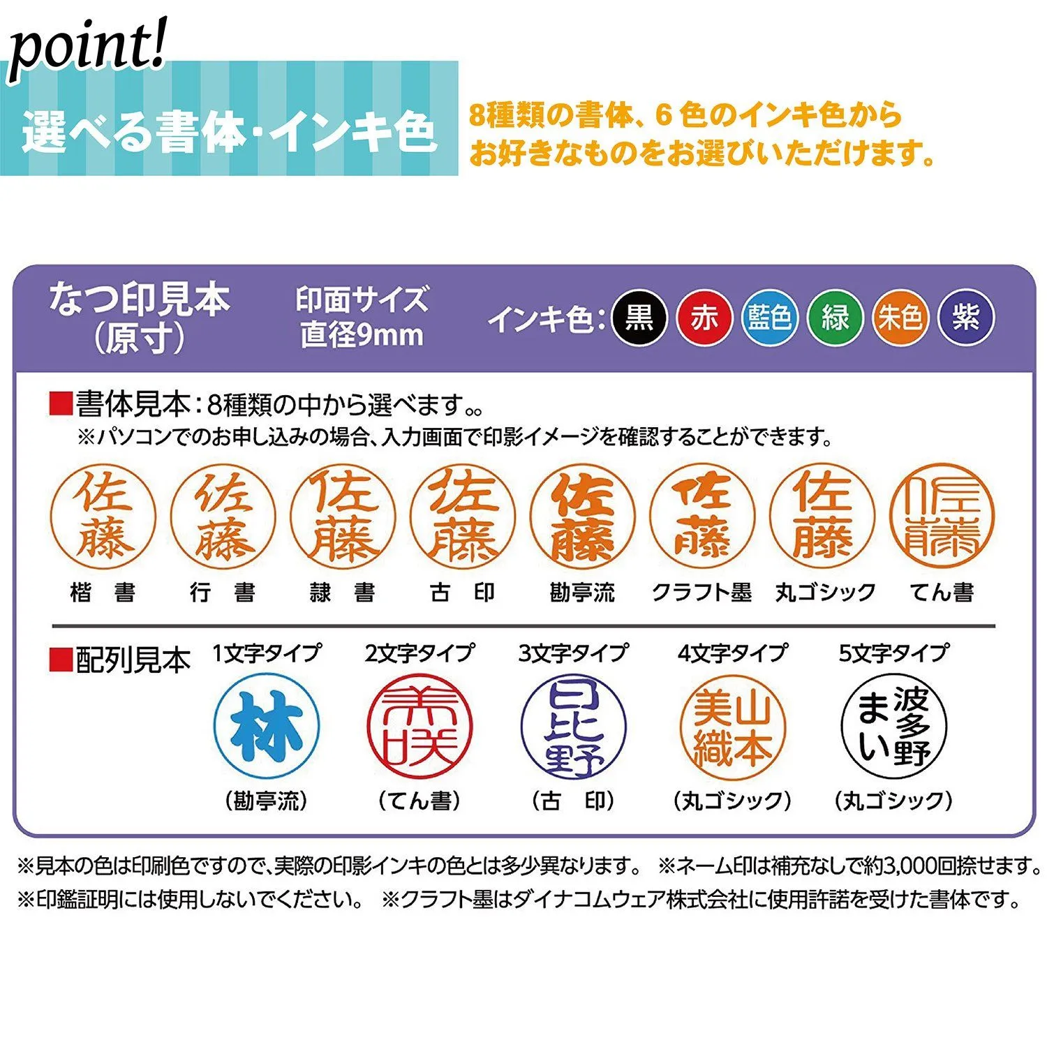 【仕様】書体・インキ色・注文方法はお選び頂けます。