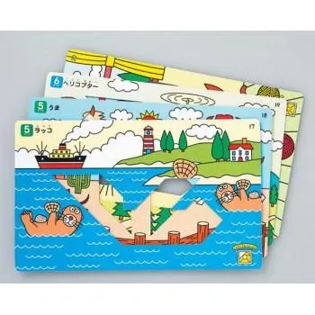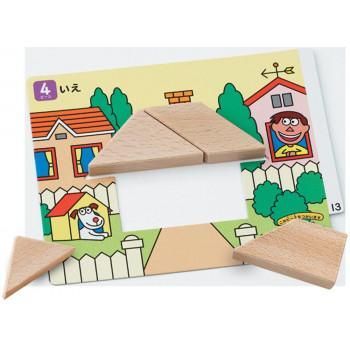 形、大きさがバラバラの7種類のピースを使って、指定の形を作るパズル。まずは、ガイドボードを使って遊ぶことから始めます。ガイドボードは2ピース使用から少しずつむずかしくなる20段階。小さいお子さまから大人まで、ご家族で楽しく遊べます。