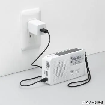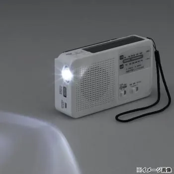 ■ラッピング(包装)対応不可です。 お手持ちの充電コードでスマホ等の充電が可能。乾電池と内蔵バッテリーで電源の切り替え可能。FM(ワイド)・AMラジオ対応。1LEDで懐中電灯として使用も可能。緊急時のSOSなどに使えるサイレン搭載。 ※電池は付属しません。 ※光源と内蔵されているリチウム電池は交換不可です。 ※本製品はPSマークの対象外の製品です。 サイズW140mm×H80mm×D38mm 個装サイズ:21.8×16.9×4.6cm 重量230g 個装重量:330g 素材・材質ABS樹脂 仕様機能:AM/FM(ワイドFM対応)・手回し充電・USB充電・ソーラー充電・スマホ充電・簡易ライト・サイレン(約90dB) ライト光源:白色LED×1灯 ※交換不可 使用電池:内蔵充電池:500mAh/3.7Vリチウムイオン電池 ※交換不可 単4形乾電池×3本 ※別売 連続使用時間:乾電池:ラジオ/約3時間、ライト/約6時間、サイレン/約2時間 USB充電(満充電時):ラジオ/約3時間、ライト/約5時間、サイレン/約2時間 手回し充電(10分間発電時):ラジオ/約13分、ライト/約27分、サイレン/約27分 ソーラー充電(60分間充電時):ラジオ/約20分、ライト/約70分、サイレン/約20分 USB充電時間:約6時間(満充電までの目安) 受信周波数:AM:530~1710kHz、FM:76~108MHz サイレン音量:約90dB(距離10cmの場合) スピーカー:Φ50mm、8Ω、0.5W 定格電圧:5V 定格電流:最大500mA 保証期間:1年 ※本製品は特定電気用品ではない為、PSEマークの対象外の製品です。 付属品付属品:ストラップ、USB接続ケーブル 生産国中国 fk094igrjs おすすめ 商品番号:ab-1885734 ※代引き不可 同梱不可※北海道、沖縄、離島送料は別途お見積り。※手配完了後は、ご注文キャンセルを承る事が出来ません。何かございましたら事前にお問い合わせ下さい。