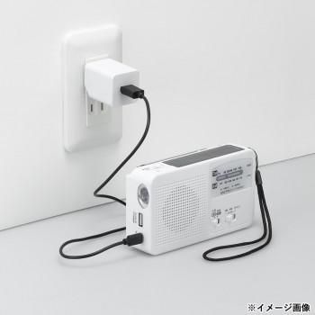 お手持ちの充電コードでスマホ等の充電が可能。乾電池と内蔵バッテリーで電源の切り替え可能。FM(ワイド)・AMラジオ対応。1LEDで懐中電灯として使用も可能。緊急時のSOSなどに使えるサイレン搭載。