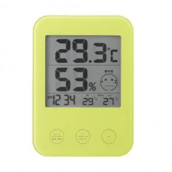 【表示内容】 ・時計:12時間/24時間切り替え表示 ・温度:-9.9~49.9度(0.1度単位) ※測定範囲外はLLもしくはHH表示 ・最高/最低表示 ・熱中症指数:顔マーク 4段階表示 ・インフルエンザ指数:顔マーク 3段階表示