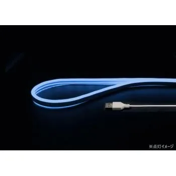 LEDの光が拡散するためネオン管のようにほぼ均一に光ります。針金のような芯線が入っており、自由に曲げて形状を保持できます。USB電源に接続するだけの簡単設計です。付属のUSBケーブルで、スマホ用充電器やUSBバッテリーを利用できます。