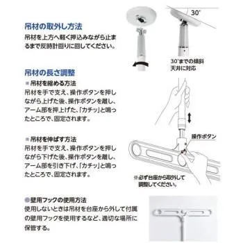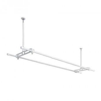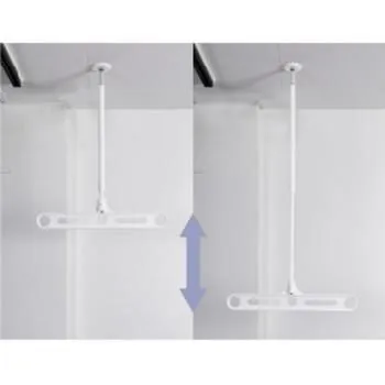 天井に取付けて、必要な時に吊材を取付け、洗濯物の量によって竿を1本か2本の使い分けることができます。均等に洗濯物を干すと、16kgまで干せます。