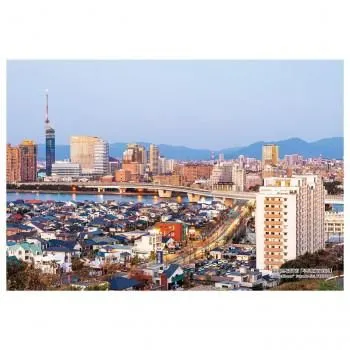 その土地にかかわる風景や物なども含めて有名なものをパズルにした、シリーズ「日本の都市」。百道(ももち)は、福岡市早良区の地名です。シーサイドももちは、早良区最北部に位置する海岸の埋め立てによるウォーターフロント開発地区であり、かつて百道海水浴場などでにぎわった海岸の沖合に展開されています。福岡の新都心の一部を構成し、早良区のランドマーク地区となっています。