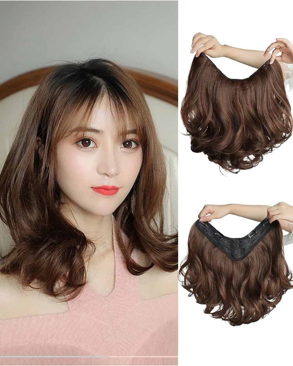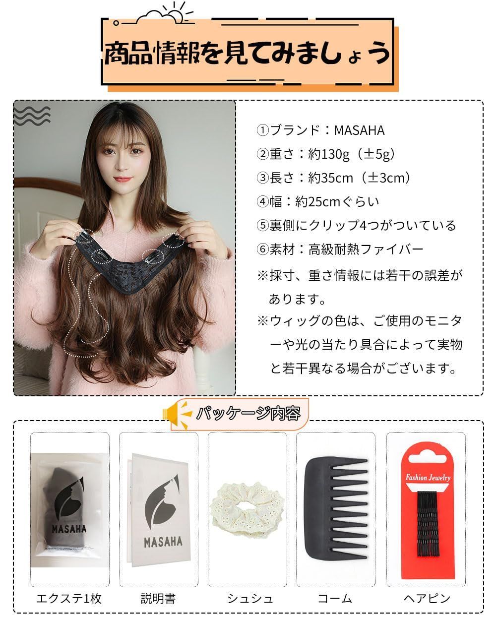 MASAHA エクステ ワンタッチ 襟足ウィッグ ボリュームアップ つけ毛 カール 巻き髪 セミロング 部分ウィッグ ヘアピース (ブラック)