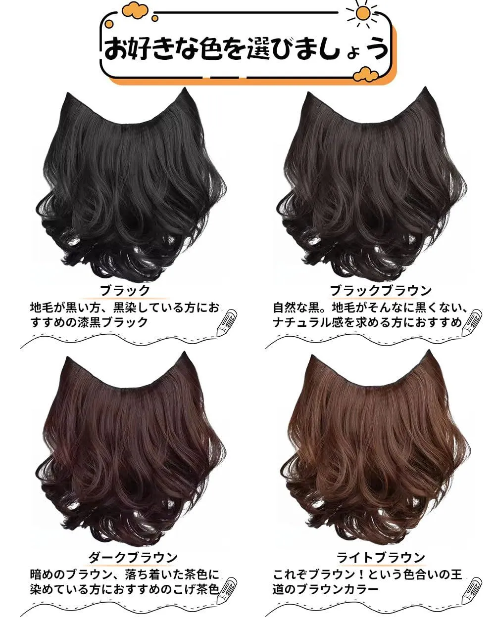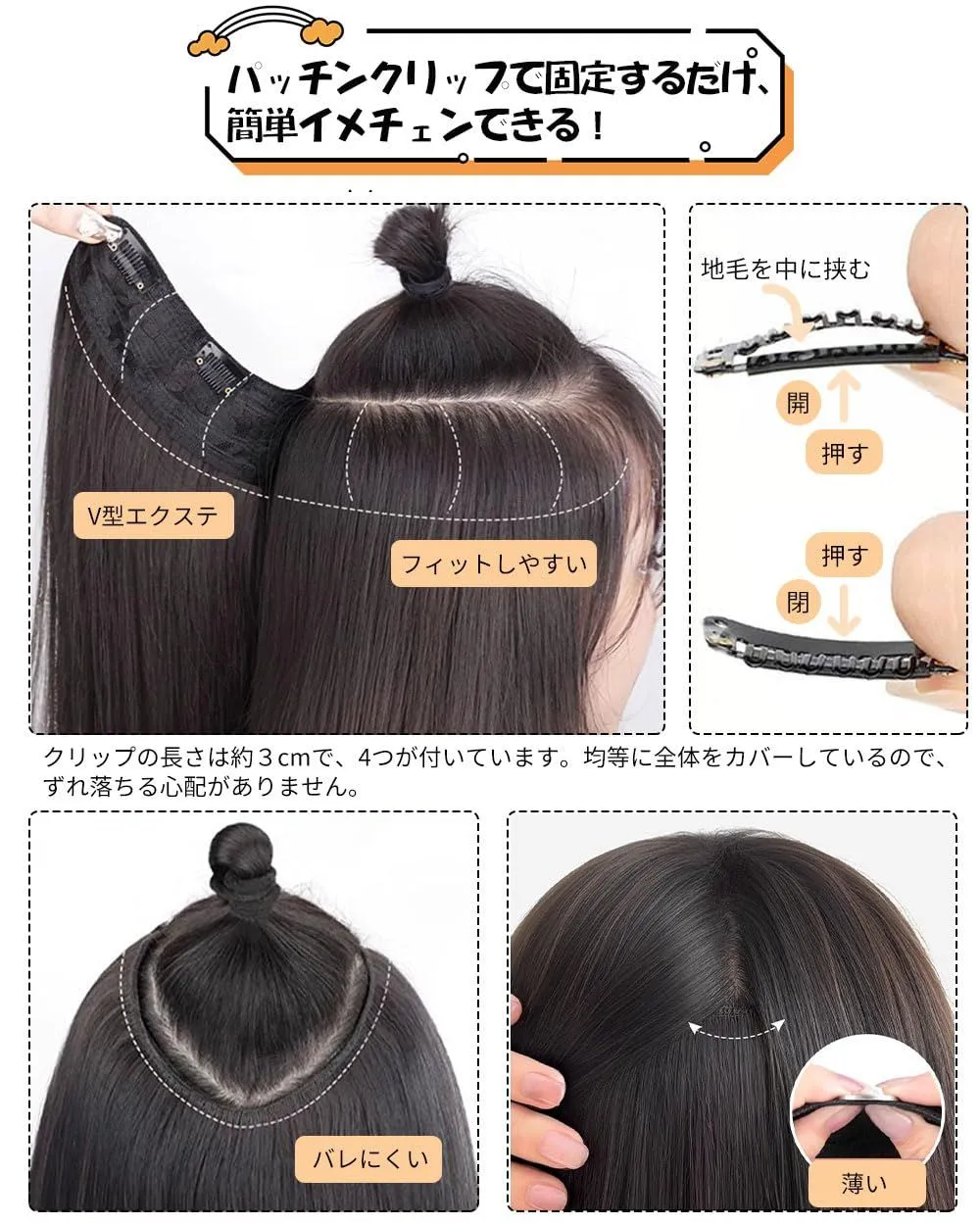 パッチンクリップで固定するだけ、簡単イメチェンできる!クリップは4箇所にある、しっかり留めるので、長時間つけても落ちないです。