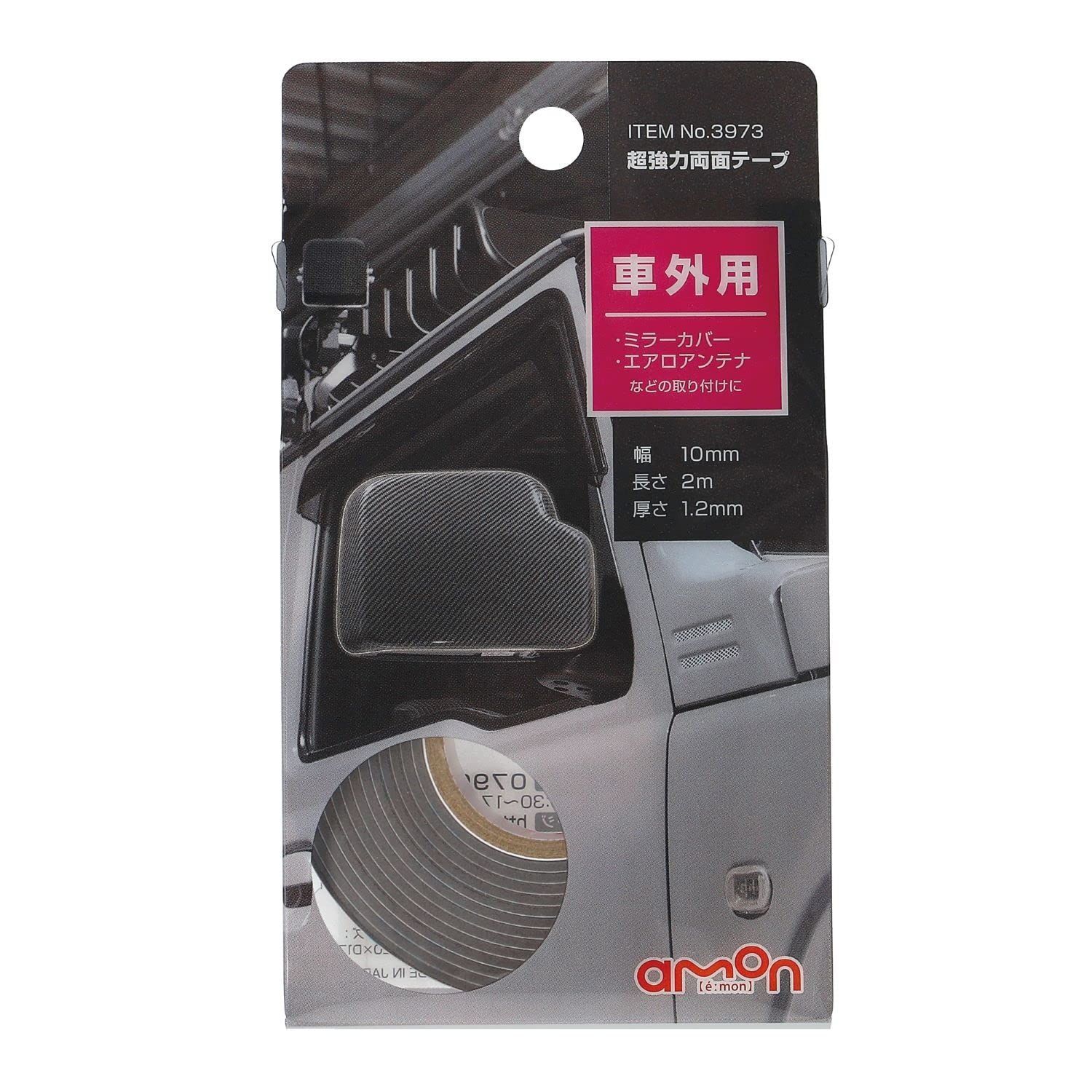 グレー 車外用 (ミラーカバー・エアロアンテナなどに) 幅10mm×長さ2m×厚さ1.2mm 超強力両面テープ 3973 エーモン(amon)