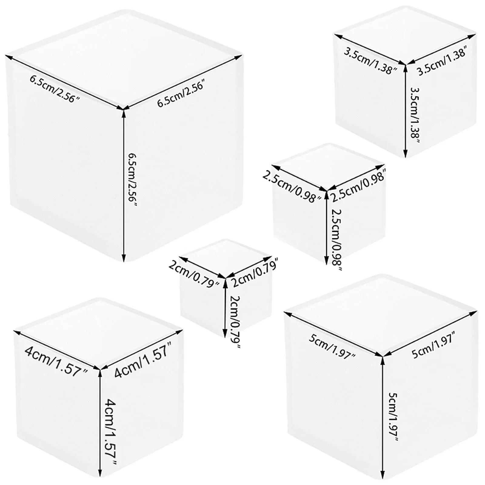 型 UVレジン オルゴナイト 65mm/50mm/40mm/35mm/25mm/20mm 6サイズ エポキシ樹脂 キューブ型 立方体 シリコンモールド 抜き型 レジン 正方形