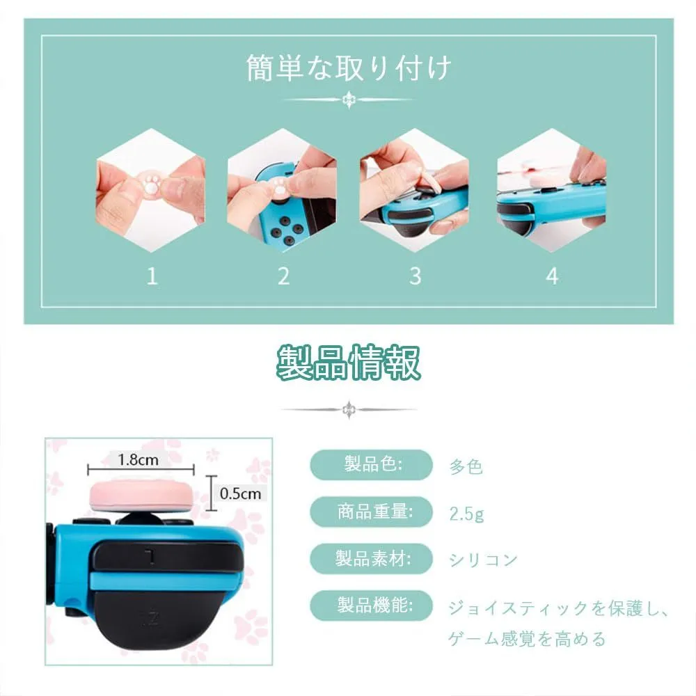 【Switch/Switch Lite 対応】 スティックカバー 滑り止め保護カバー(16個セット) ロッカーキャップ 猫手 肉球 猫の爪 Nintendo Joy-Con ジョイスティックカバー 取り付け簡単