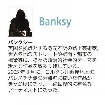 ■ラッピング(包装)対応不可です。 絵と額がセットになった商品です。 作家:バンクシー(詳細不明) 英国を拠点とする身元不明の路上芸術家。世界各地のストリートや壁面・都市の橋梁等に、様々な政治的社会的テーマを訴える作品を数多く残している。2005年8月に、ヨルダン川西岸地区のパレスチナ側の分離壁に描いた作品がきっかけになり、一躍世界的に有名なアーティストになる。 サイズ外寸:W30×H37.5×D3cm 個装サイズ:1.0×30.0×37.5cm 重量約1kg 個装重量:3g 素材・材質樹脂フレーム 仕様絵の表面を特殊ゲル加工 セット内容絵、額 生産国日本 fk094igrjs インテリアとして壁に似合う 商品番号:ab-1894738 ※代引き不可 同梱不可※北海道、沖縄、離島送料は別途お見積り。※手配完了後は、ご注文キャンセルを承る事が出来ません。何かございましたら事前にお問い合わせ下さい。