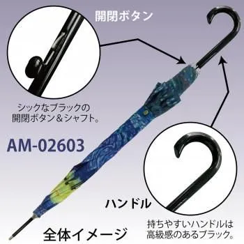 商品名:名画モザイクアートシリーズ~木製ジャンプ傘~ ゴッホ「星月夜」 AM-02603