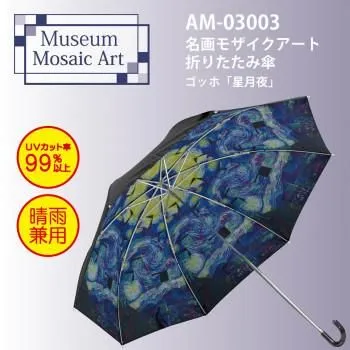商品名:名画モザイクアートシリーズ ~折りたたみ傘(晴雨兼用)~ ゴッホ「星月夜」 AM-03003