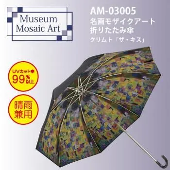 商品名:名画モザイクアートシリーズ ~折りたたみ傘(晴雨兼用)~ クリムト「ザ・キス」 AM-03005