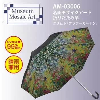 商品名:名画モザイクアートシリーズ ~折りたたみ傘(晴雨兼用)~ クリムト「フラワーガーデン」 AM-03006