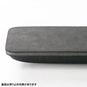 低反発ウレタンを使用したリストレストです。通常のウレタンフォームに比べ反発弾性が非常に小さく、ゆっくり沈み込んでゆっくり戻る特性があります。表面生地には菌の増殖を防ぐ抗菌加工を施しています。※抗菌作用で黄色ブドウ球菌、大腸菌の繁殖を抑えます。※JIS L1902「抗菌加工製品、抗菌性試験方法、抗菌効果」に基づく抗菌性試験をクリアしています。裏面は滑り止め効果があります。