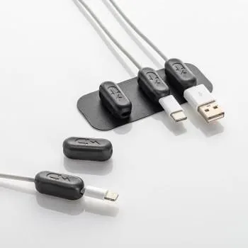 ケーブルをマグネットで固定、簡単に配線ができるケーブルホルダーです。ホルダーを付属のベースや机の脚などに取り付け、ケーブルの落下を防ぐことができます。ベース自体は、両面テープで貼り付けることができ、任意の場所に固定できます。ホルダーは、直径約3.5mm以下の多くのケーブルに対応しています。本製品は、ベース1個、ホルダー5個のセット内容です。