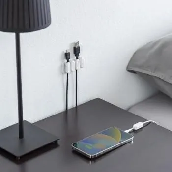 ケーブルをマグネットで固定、簡単に配線ができるケーブルホルダーです。ホルダーを付属のベースや机の脚などに取り付け、ケーブルの落下を防ぐことができます。ベース自体は、両面テープで貼り付けることができ、任意の場所に固定できます。ホルダーは、直径約3.5mm以下の多くのケーブルに対応しています。本製品は、ベース1個、ホルダー5個のセット内容です。