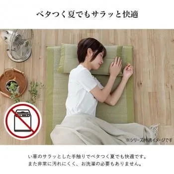 ■ 快眠い草の効能として 1.綿の約2.5倍の吸湿力 2.蒸れにくい。汗による湿気を吸うことにより温度を下げ快適な就寝を促します。 3.汗のにおいを軽減。汗のにおいの元となる化学物質を90%以上抑えます。などがあります。 暑苦しい日本の夏でも汗のジメジメを軽減してくれます。