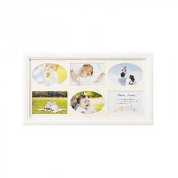 6枚の写真を入れられるマット付きです。インテリアに馴染むホワイトフレーム仕様です。樹脂製フレームで壁掛けでも安心の軽さです。