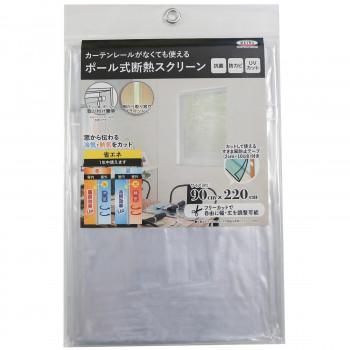 市販のテンションポールやのれん棒を使ってカーテンレールがない場所でも取り付けられる断熱スクリーンです。室内への熱気・冷気の侵入を抑え、冷暖房効率をアップします。お部屋の間仕切りとしてもおススメです。