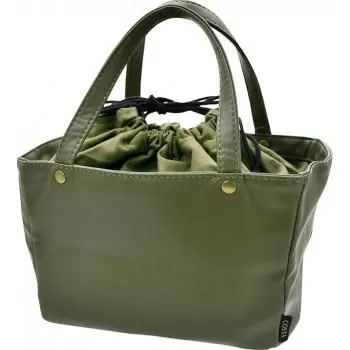 高級感のあるフェイクレザー素材で、バッグのようにオシャレにランチを持ち運ぶことができます。巾着カバー付きで、中身が見えたり飛び出るのを防ぎます。内側はアルミ蒸着フィルムで、保冷・保温効果を援助します。