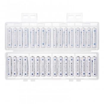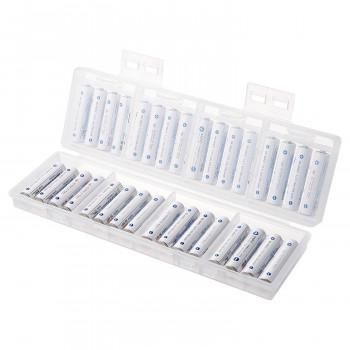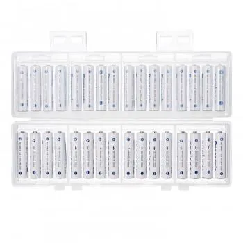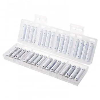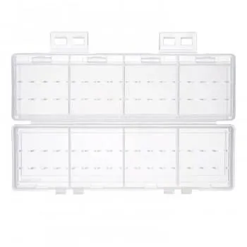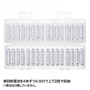 単四乾電池の収納に対応した、32本収納可能な2段式大容量電池ケースです。電池は4本ずつに分けて収納できるので管理に便利です。充電式電池、未使用乾電池の整理や保管に最適な大容量タイプです。スタッキングしたときにケースがずれにくい設計です。軽くて割れにくいPP(ポリプロピレン)素材を使用しています。