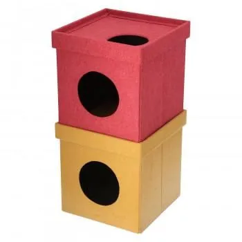 不二貿易 (C/D:53711) ペットハウスキューブ2段 RD/YE