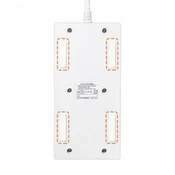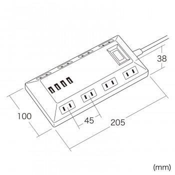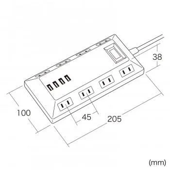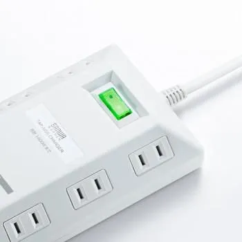 平型で台形型のタップなので、両側から差込みができてコードも取り回しも良くなります。差込口が8個口あり、ACアダプタを差込む場合でも間隔を広く取っているので、心配ありません。USB充電ポートが4ポート(合計4.8A)あり、タブレットやスマートフォンの充電もできます。安心を考慮したブレーカー内蔵一括集中スイッチ付きです。