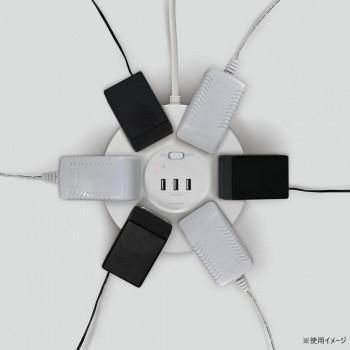商品名:ELPA 丸形USBタップ6P WLS-R6332BUA(W)