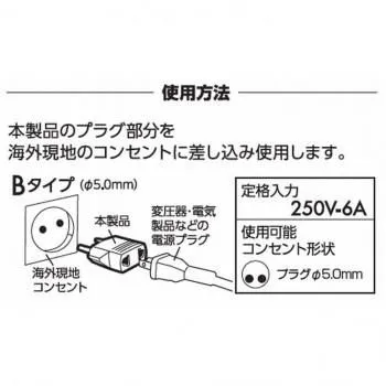 商品名:YAZAWA(ヤザワコーポレーション) 海外用電源プラグBタイプ KP2