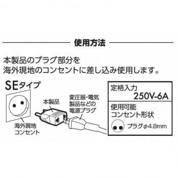 商品名:YAZAWA(ヤザワコーポレーション) 海外用電源プラグSEタイプ KP6